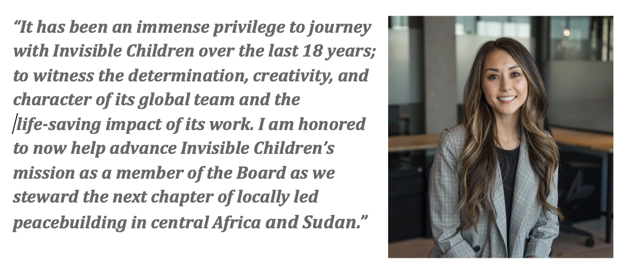 Invisible Children is thrilled to announce the appointment of Peter J. Quaranto and Lisa Dougan to its Board of Directors. Their addition marks an exciting moment of renewal and momentum for the organization as it deepens its commitment to locally-led peacebuilding and community protection across Central Africa and Sudan during a time of significant regional and global change.