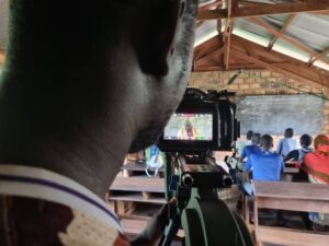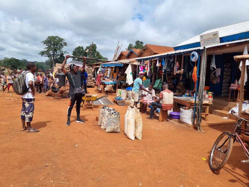 A key element of the P2P peacebuilding work is a new Mobile Cinema project called E Ma Tere. It is a three-episode mini-series that was written, produced, and performed entirely by Central African artists, filmmakers, and community members. It tells the story of a Central African community grappling with reconciliation, resilience, and hope in the aftermath of conflict and displacement. Through diverse characters and exploring their struggles, the series challenges biases and encourages audience members to stand up against hate speech, gender-based violence (GBV), and armed group recruitment. Through powerful storytelling and local perspectives, the series aims to foster dialogue, empathy, and understanding among diverse communities, including Christians and Muslims.