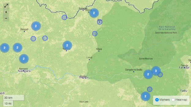 In April, our Crisis Tracker Team, informed by reports from the Early Warning Network, identified a spike in LRA attacks on communities around Garamba Park, indicating the presence of an LRA poaching mission. Later that same month, three Garamba Park rangers were tragically killed and two others were seriously wounded in a clash with armed poachers in Garamba. While the armed group responsible for this attack on the park rangers is not believed to be the LRA, the very real connection between illegal wildlife trafficking and threats to human security remains evident.